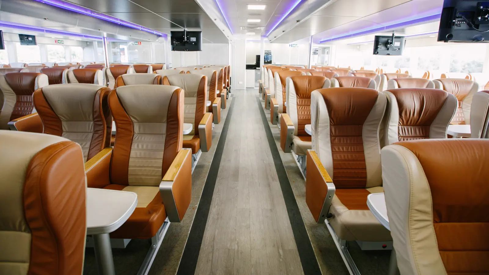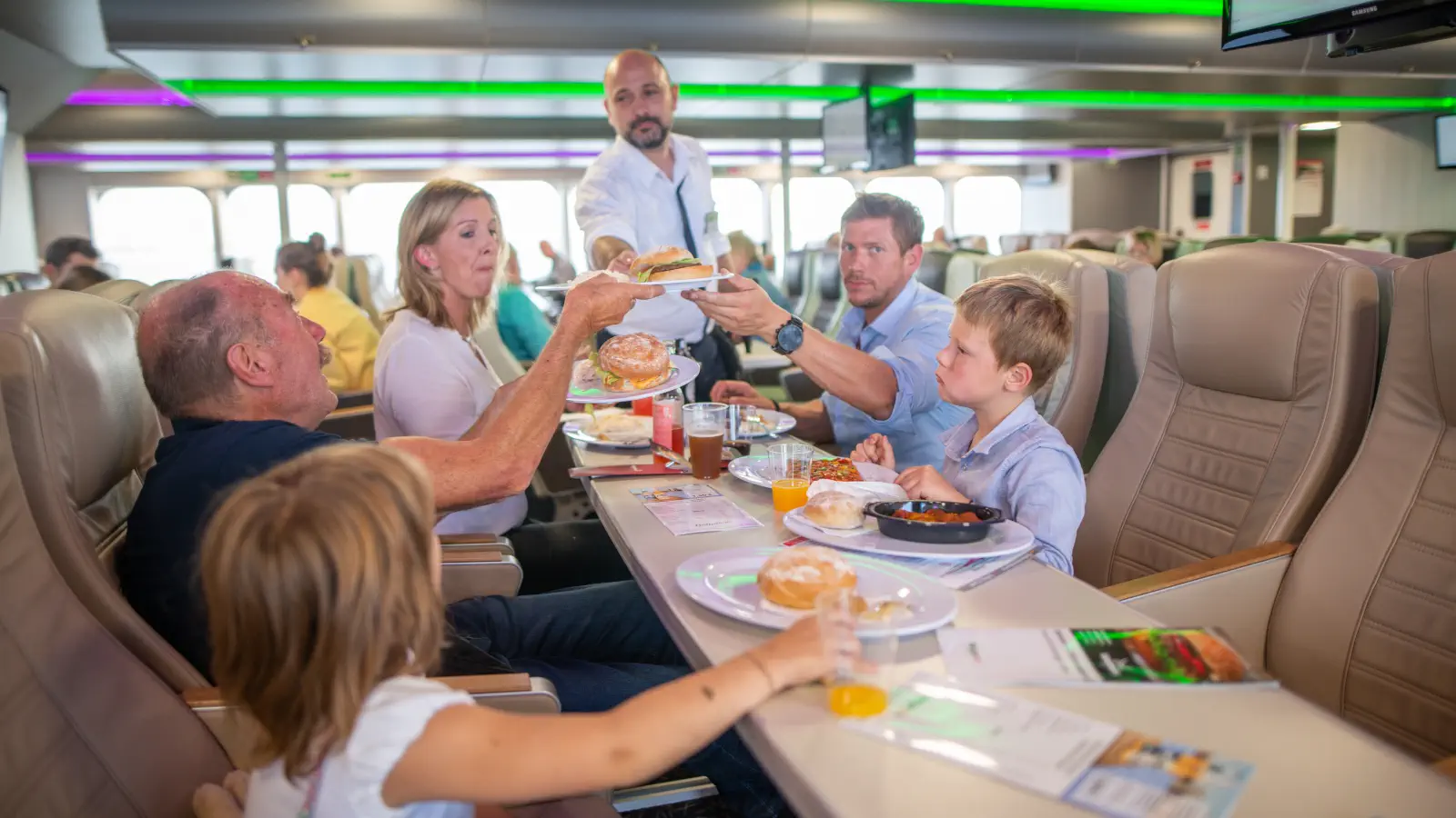 FRS Helgoline takes you to Heligoland quickly and comfortably with the high-speed catamaran “Halunder Jet”. Departures are from Hamburg, Brunsbüttel and Cuxhaven. Spacious panoramic windows, outdoor decks and gastronomic service await you on board. With over 40 years of experience, FRS Helgoline ensures a pleasant crossing.