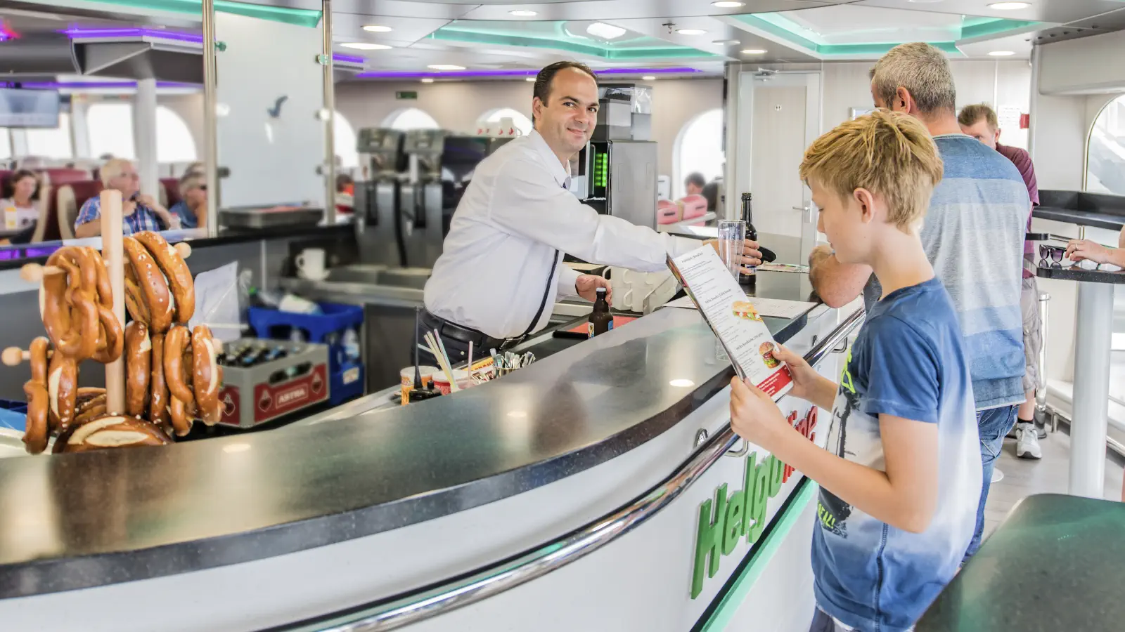 On the way to Helgoland, you will cross the Elbe and dock briefly in Brunsbüttel and Cuxhaven before heading out to sea. Enjoy the time on deck, the fresh sea air and the view of the North Sea.